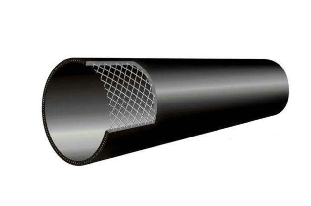 鋼絲網(wǎng)骨架塑料(聚乙烯)復(fù)合管是以纏繞鋼絲網(wǎng)為中間層,內(nèi)外層為聚乙烯塑料或抗靜電阻燃料,采用專用熱熔膠粘貼固定鋼絲網(wǎng),通過擠出成型復(fù)合成一體的管材。通過在普通塑料中間層纏繞一層高強(qiáng)度鋼絲來提高管材耐壓等級。這種復(fù)合管材壁厚比純PE管減少,比普通的純PE管(特別是口徑大于250mm以上)用料少,成本有所下降,是10-35公斤壓力管材的一種替代品,廣泛應(yīng)用于供水、排水、通風(fēng)抽放瓦斯氣體等領(lǐng)域。
